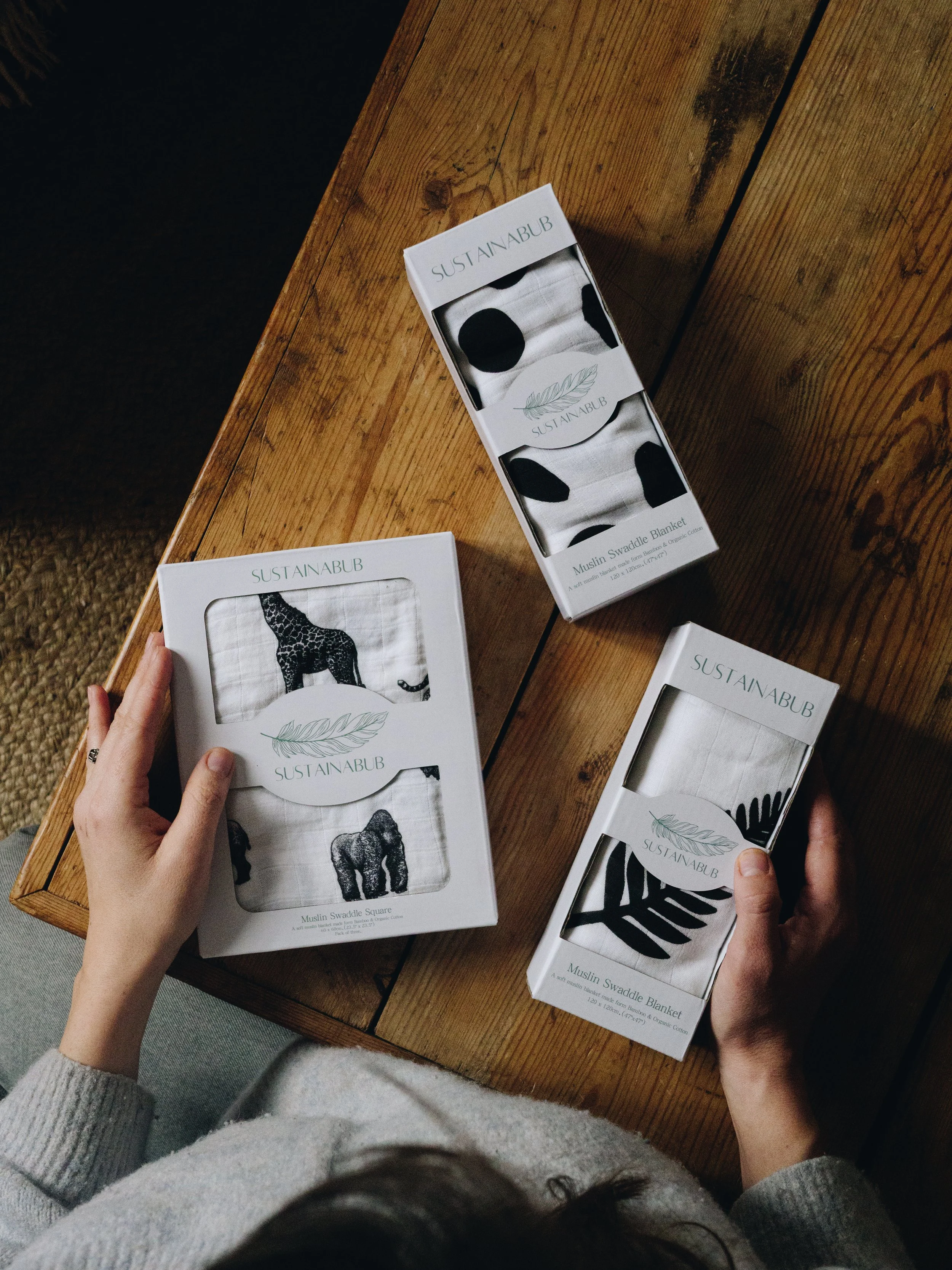 Sustainabub sell muslins and wraps. They use a signature blend of bamboo and organic cotton chosen for its softness, breathability and lower environmental impact. Every wrap and muslin is produced in GOTS-certified factories, meeting globally recognised standards for organic and ethical manufacturing. Their high contrast black and white prints are designed to support your babies developing vision in their early months.