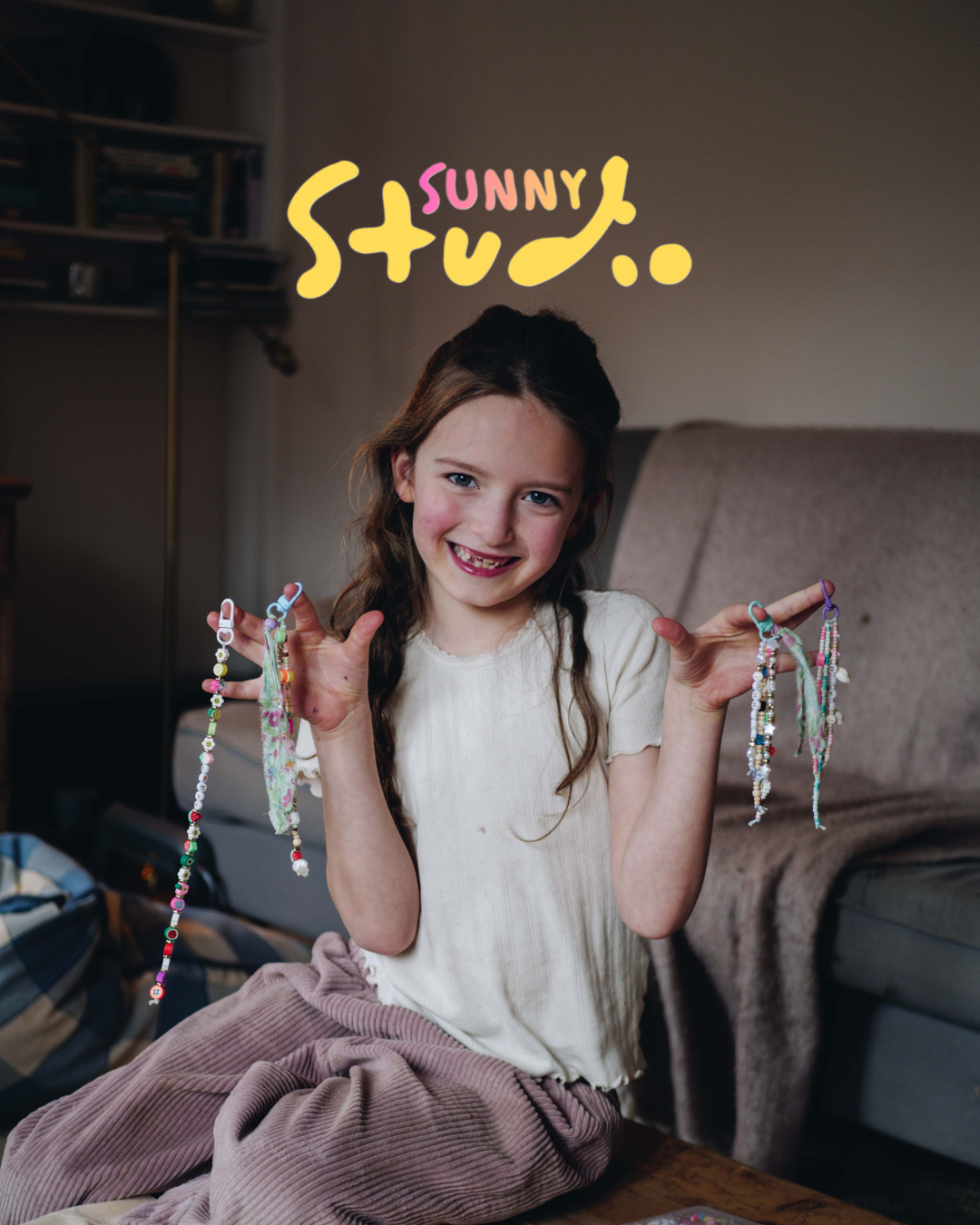 My name is Heppy and I am homeschooled. I am learning about business with my friends. I am about to be 8 years old, and I live in West Sussex. My Mum and Dad run Holos Kombucha, and my favourite flavours are Citra Hops, Raspberry and Elderflower and Cucumber and Mint. I like playing outside with my friends, and I love creating so much, which is why I decided to start Sunny Studio.